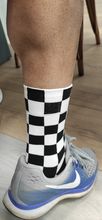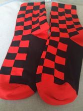 Nice socks colour accurate. Cycling socks (thin) not padded like a basketball or running sock. Fits a size 45 foot as stretches well.